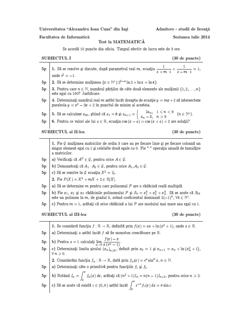 Pot fi înscrişi fără admitere: Olimpiadele naţionale sau internaţionale de matematică sau informatică. Specializari facultatea de matematica din iași. See more of facultatea de matematică a universității alexandru ioan cuza din iași on facebook. Vezi procedura de admitere, actele necesare pentru inscrierea la facultate.