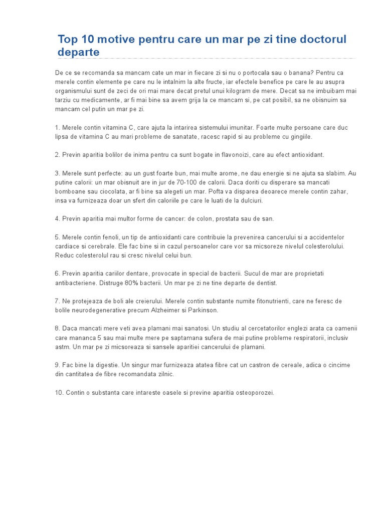 Get your team aligned with all the tools you need on one secure, reliable video platform. Prezente în orz, ovăz, nuci, linte, citrice, fructe uscate. Deși cercetările arată că consumul mai multor mere nu poate fi asociat cu mai puține vizite la vom analiza în cele ce urmează mai îndeaproape dacă consumul unui măr pe zi poate ajuta cu adevărat la distanța cu medicul.